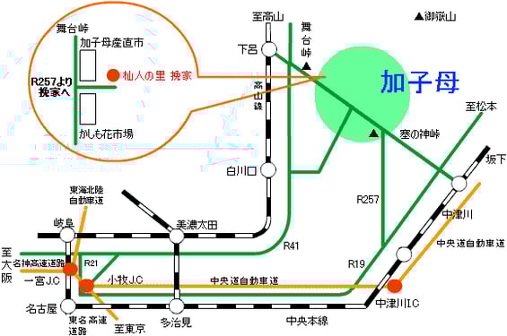 中央自動車道中津川インター下車国道257号を下呂温泉方面へ北上